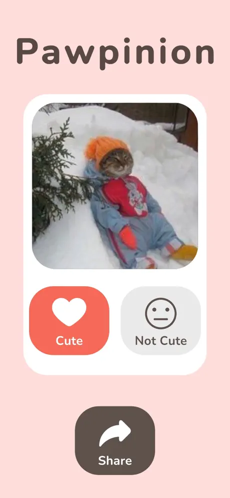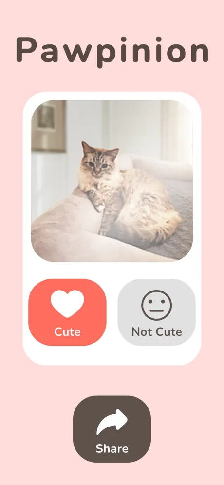 Welcome to Pawpinion – the ultimate app for cat lovers and cuteness connoisseurs!Get ready to swipe, laugh, and "aww" as you scroll through a never-ending stream of adorable (and occasionally odd) cat photos and GIFs. Your job? Decide if each feline is Cute or Not Cute